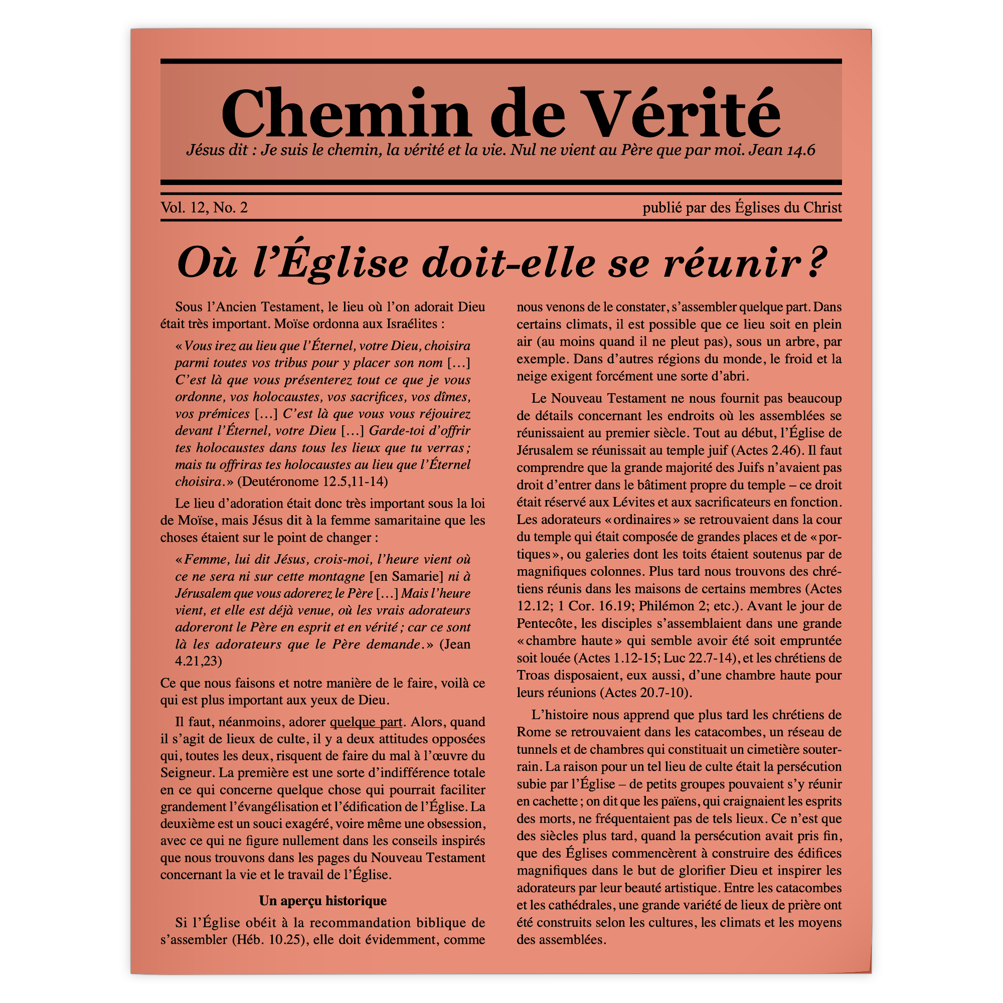 L’importance de nos lieux de culte aux yeux de Dieu ; les avantages (et dangers) d’un lieu de culte ; la relation entre le lieu de culte et la croissance de l’Église.