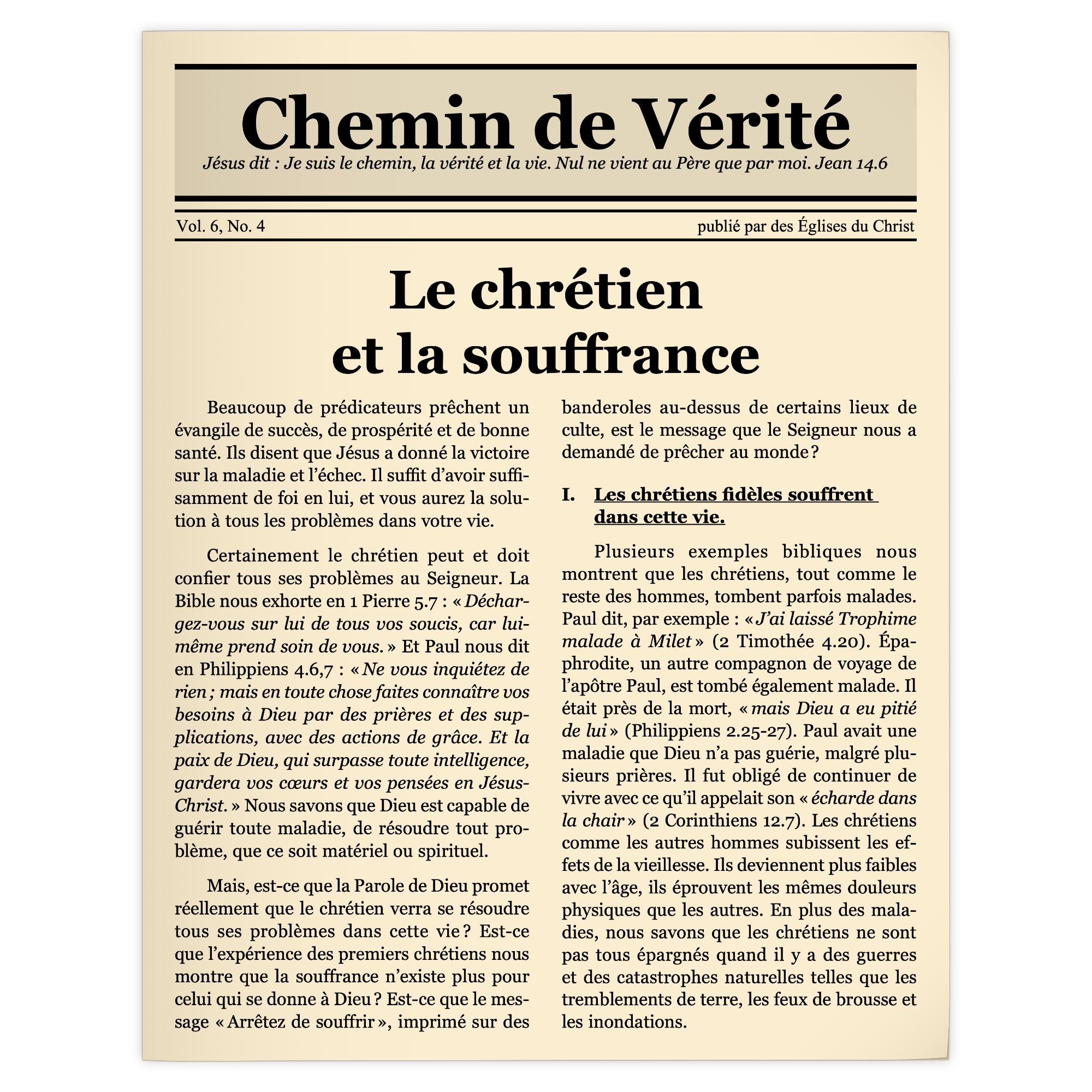 Beaucoup de prédicateurs prêchent un évangile de succès, de prospérité et de bonne santé. Ils disent que Jésus a donné la victoire sur la maladie et l’échec. Il suffit d’avoir suffisamment de foi en lui, et vous aurez la solution à tous les problèmes dans votre vie.