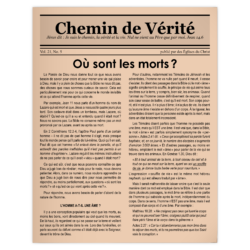 UGS : CV21-N5 | par Barry BAGGOTTOn se pose des questions au sujet de ce qui arrive après la mort d’un être humain : Cesse-t-il d’exister ? Dans le cas contraire, quelle serait la nature de son existence ? S’il est juste, va-t-il directement auprès de Dieu dans le ciel ou bien doit-il attendre le jour du jugement ? Qu’est-ce qui vous attend dans l’au-delà ? Ce numéro examine de telles questions à la lumière de la Bible.